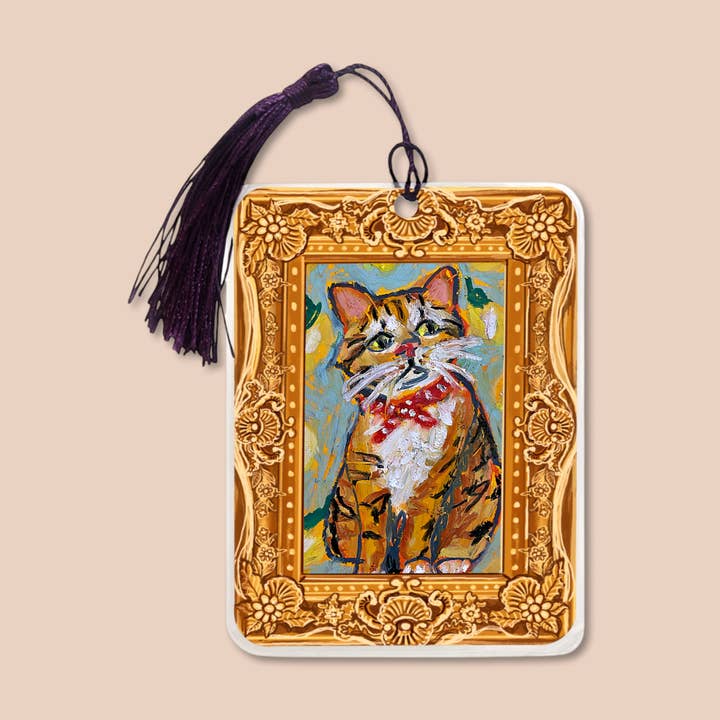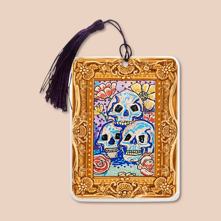 These laminated art bookmarks are designed to feel like little treasures tucked between the pages of your favorite book. Each one features a miniature framed artwork on the front, with a painted frame-back detail on the reverse so it truly feels like holding a tiny piece of art. Printed from my original artwork and finished with a luxurious 10 mil laminate, they have a smooth, soft-touch feel that’s both durable and indulgent. Each bookmark is finished with a tassel, thoughtfully curated to complement the color palette of the artwork. Size: 3.25” × 4.75” Tassel colors vary and are artist-curated to match each piece.
