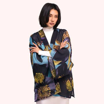 Open Front High-Low Kimono Delicate yet bold, this 3D Feather Fringe Kimono brings effortless sophistication to any look. The intricate feather-like detailing along the eyelash fringe creates a stunning dimensional effect, adding movement and elegance. Made from a lightweight fabric, it drapes beautifully over any outfit—perfect for layering over dresses, casual ensembles, or evening wear. A statement piece that exudes refined charm. 34.5" long from high point of shoulder to hem Fits size 2-22 100% Polyester Hand wash; dry flat
