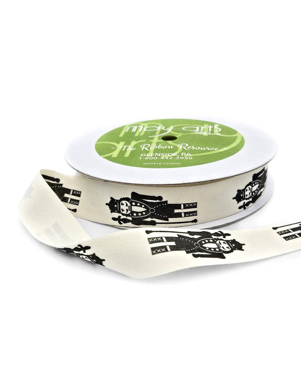 Wholesale 2 1/2" Wired Ribbon | Halloween Friends on White | 10 Yard Roll