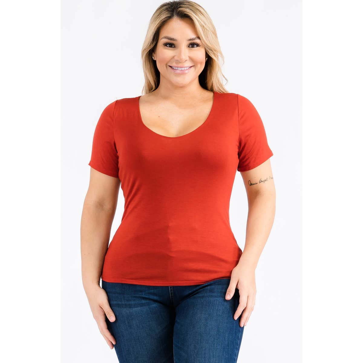 SKU: 6893E-RED-2XL Made in China Aesthetic: Outdoor and Preppy Care Instructions: Hand wash Fabric: 100% Cotton Fit: Contemporary and Plus Size Neckline: Crew neck Occasion Theme: Christmas, Everyday, and Fourth of July Occasion: Day Party and Everyday Pattern: Solid Season: Spring/Summer Sleeve Length: 3/4 Sleeve Product Language: English UPC: 091984144408