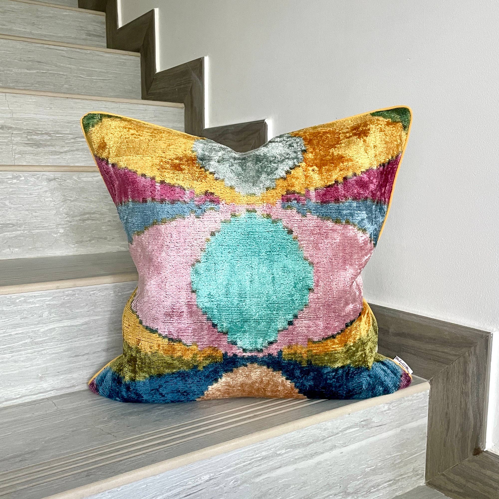 Velvet Ikat Cushion Green Planet | Velvet Ikat Pillow Green Planet