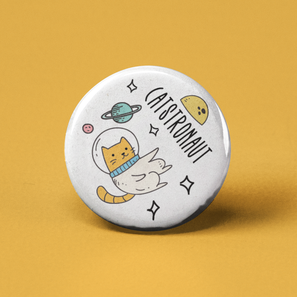 (in spacesuit) Felix has left the building... and the atmosphere. This 1.25 inch button features Felix the Cat suited up as an astronaut, floating through space with planets and stars on a black background. It's retro, surreal, and perfectly cosmic. Perfect for fans of classic cartoons, sci-fi lovers, and anyone who thinks Felix looks even cooler in zero gravity. Proudly Made in USA. Pin-back style for easy wear on jackets, backpacks, or your next rocket launch outfit. Warning: May cause spacey daydreams and sudden fascination with cartoon physics.