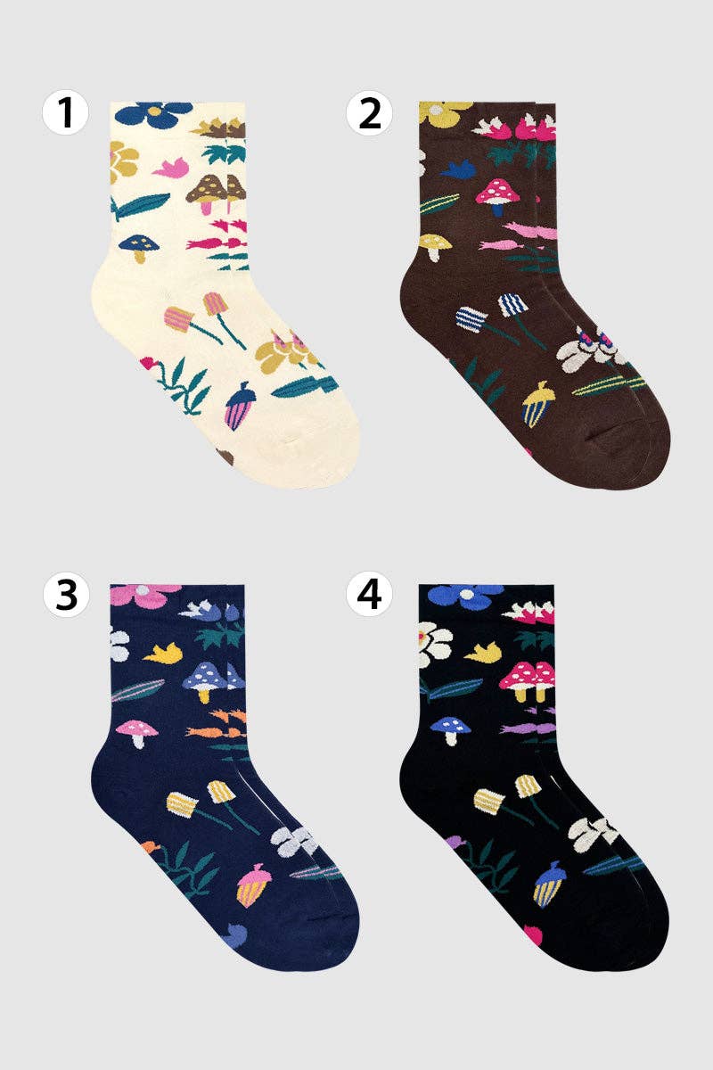 Fabric name: Cotton,Polyester Function: antibacterial, sweat-absorbent, deodorant Pattern: color matching, couple theme, plant and flower Packaging form: bag Applicable gender: neutral/both men and women Tube height: medium tube Number of needles: 200N Suitable season: general use in all seasons Product category: ordinary casual socks Weaving method: single needle