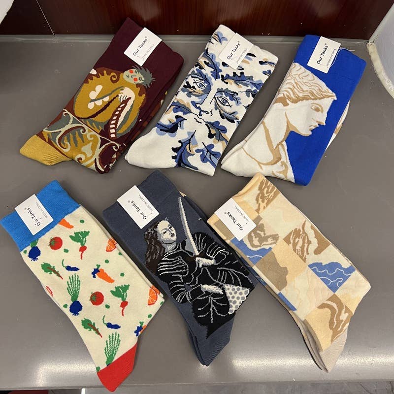 Women's Retro Middle Socks Oil Painting Pattern Socks