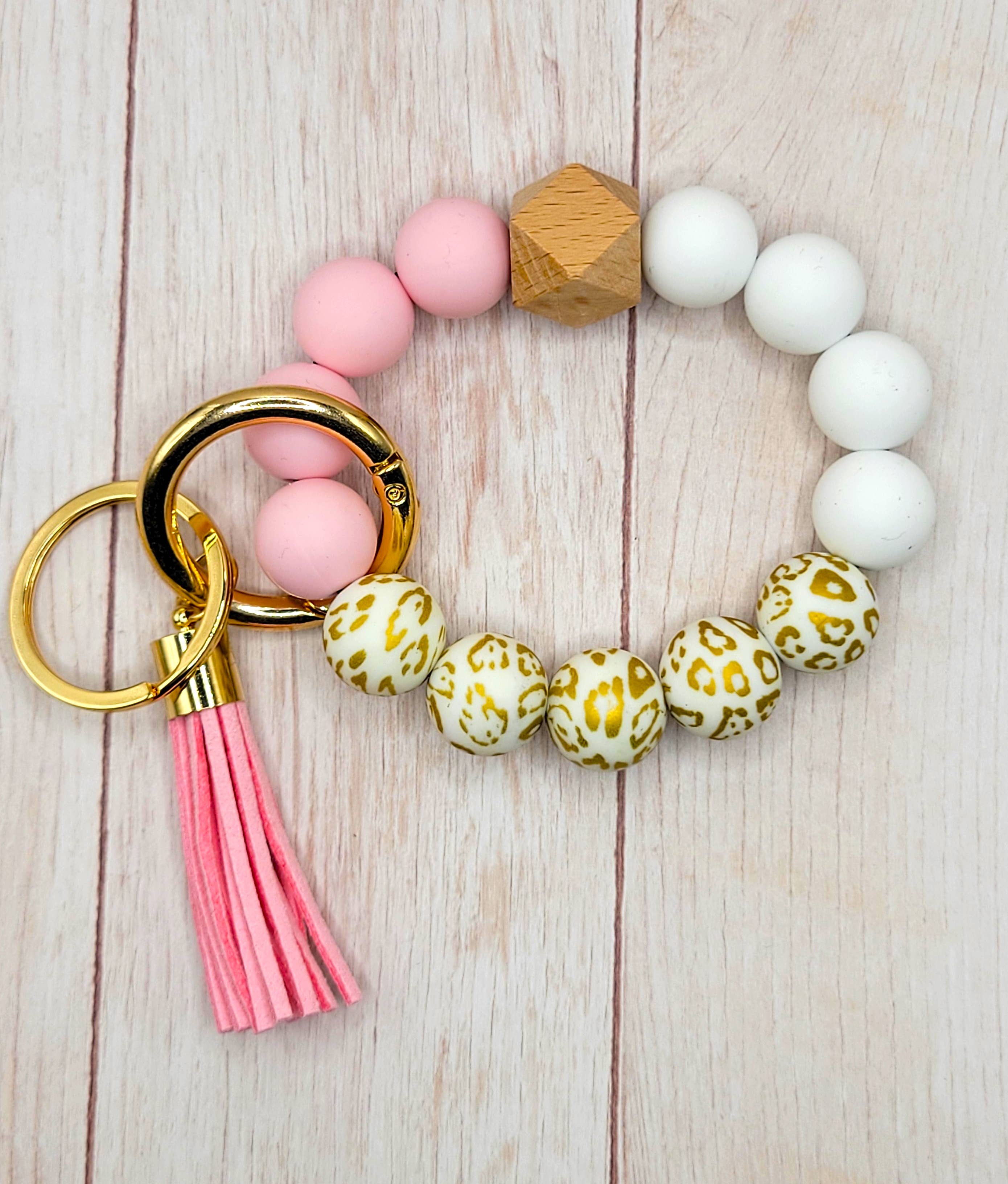 Mama Leopard Rainbow Silicone Beaded Keychain Wristlet