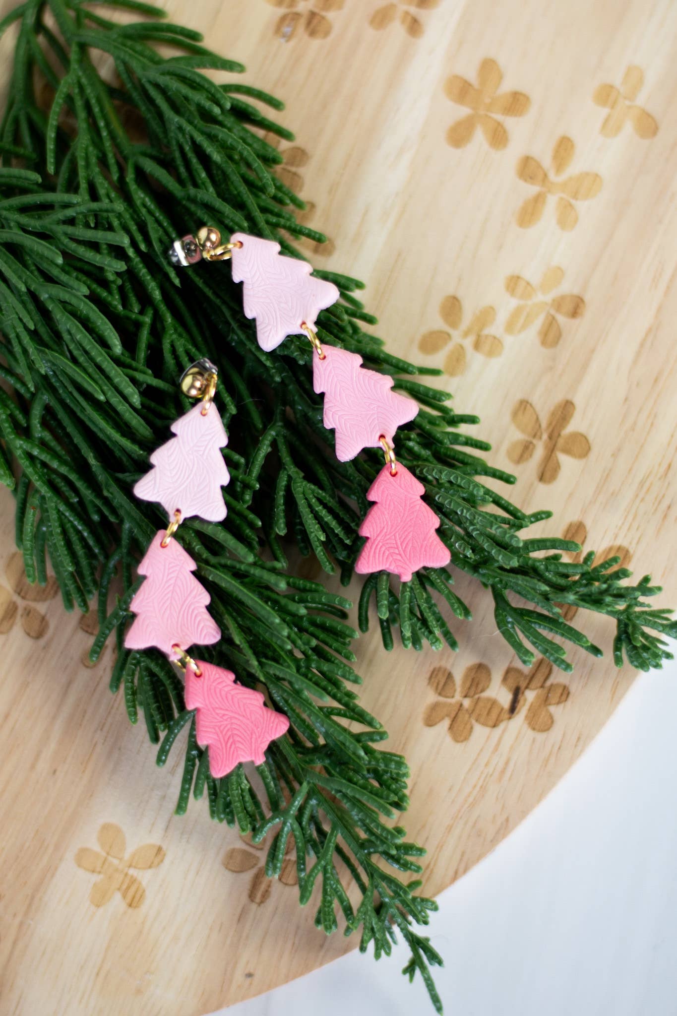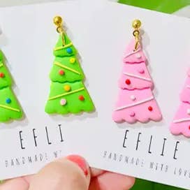 Christmas Tree Dangles Earrings | Christmas Tree Earrings | White Tree Earrings | Handmade Earrings Pink Tree Holiday Gift Texture Tree Polymer clay earrings. Super lightweight, stylish, and durable. Made with hypoallergenic stainless steel backs and brass or gold plated components. Please note that, due to lighting effects and individual monitor settings, color tones may show up a little differently on different computers. Because all our pieces are handcrafted, there may be minor variations from item to item. Polymer clay is very durable but not impossible to break. Feel free to clean the earrings with soap and water if necessary and store in a safe space when traveling with them. Please feel free to contact me with your questions!