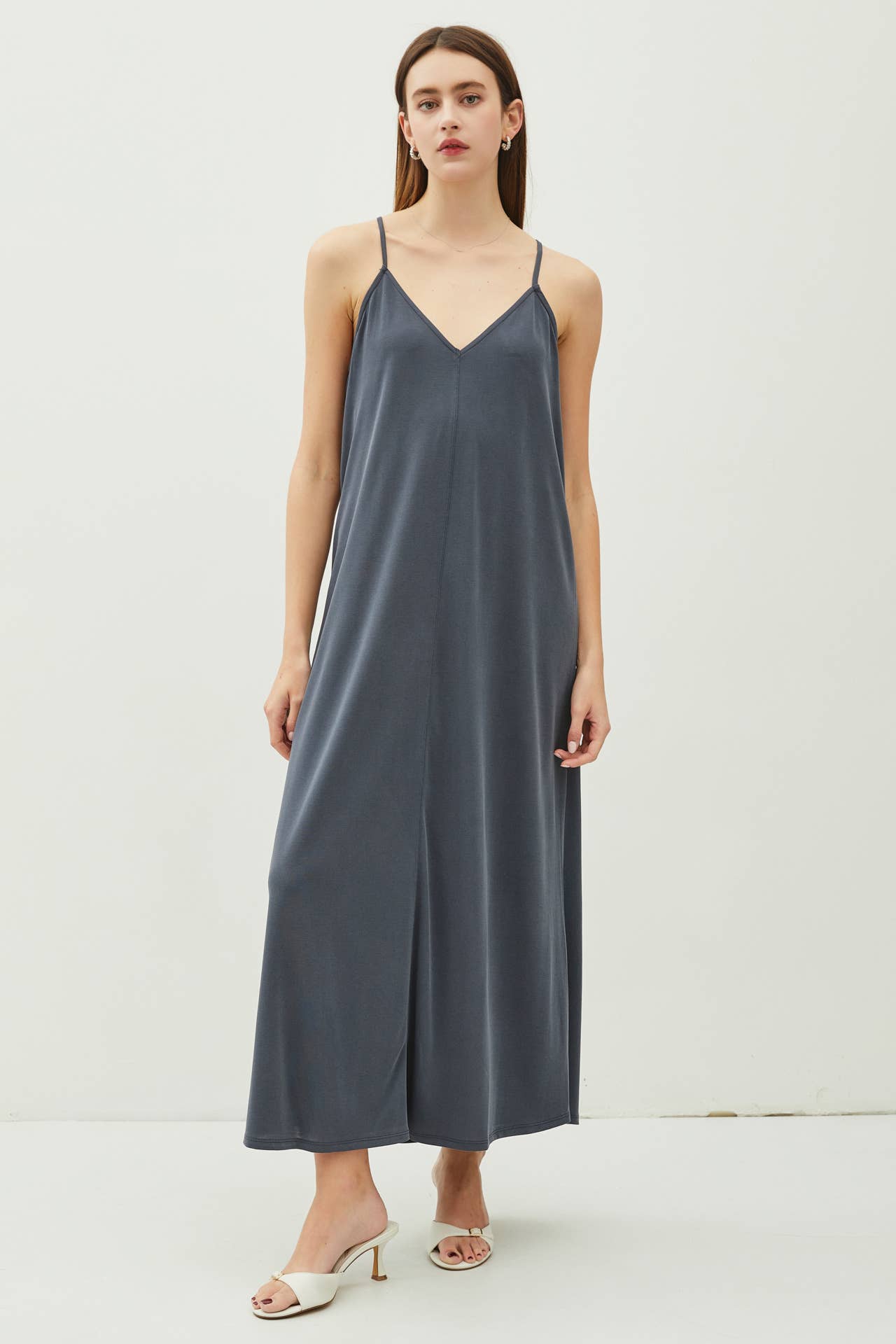 SKU: IMP-7965MPJ, IMP-7965MPJ Made in China Aesthetic: Casual Dress Style: Maxi Fabric: 100% Rayon Fit: Contemporary Neckline: V-neck Occasion Theme: Everyday Occasion: Day Party and Resort / Vacation Pattern: Solid Season: Resort Skirt & Dress Length: Maxi Sleeve Length: Sleeveless Weight: 317.51 g (11.2 oz)
