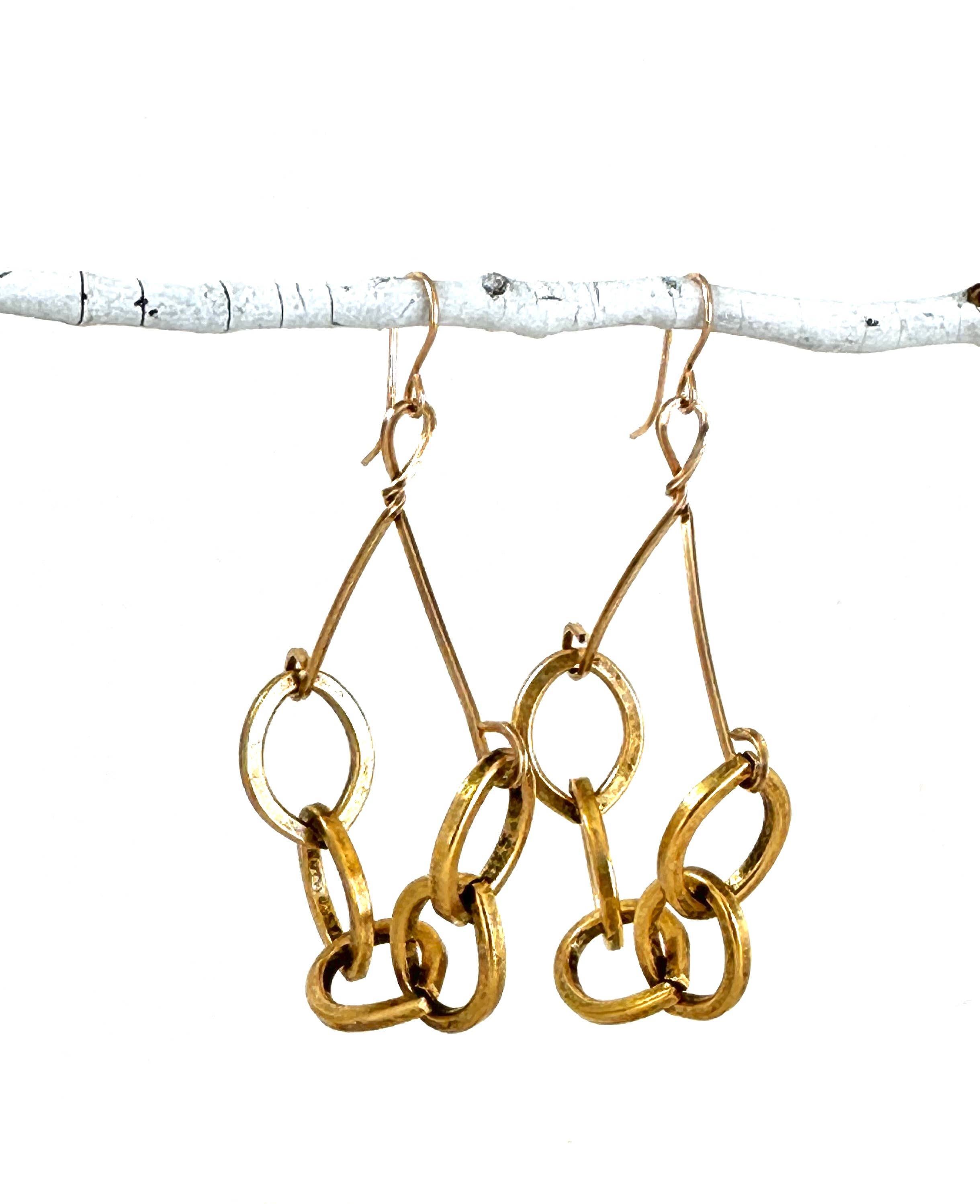 15 1/2- 17 1/2" 12k antique gold links 1 1/4" rustic brown circle link