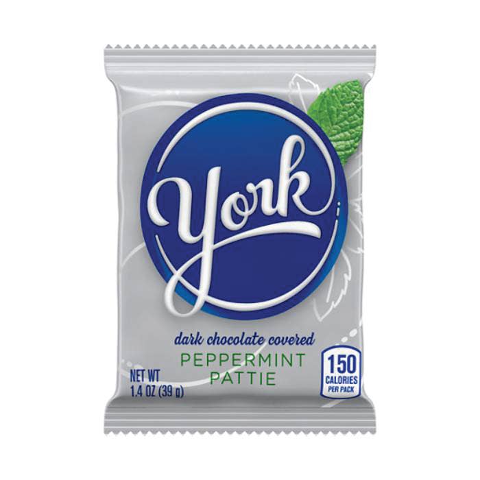 These York Peppermint Patties are new and improved but don't worry, they didn't change the flavor! They just updated the packaging and made them a bit larger, offering even more decadent, refreshing taste inside each shiny pouch. The combination of a creamy peppermint center and dark chocolate coating has been imitated, but never equaled. While it's a bonus that a York Peppermint Patty does and always has contained 70% less fat than the average of leading chocolate candy brands, their primary appeal will always be the tempting taste and texture. Go ahead Get the sensation!" About 175 Snack Size York Peppermint Patties in each box.