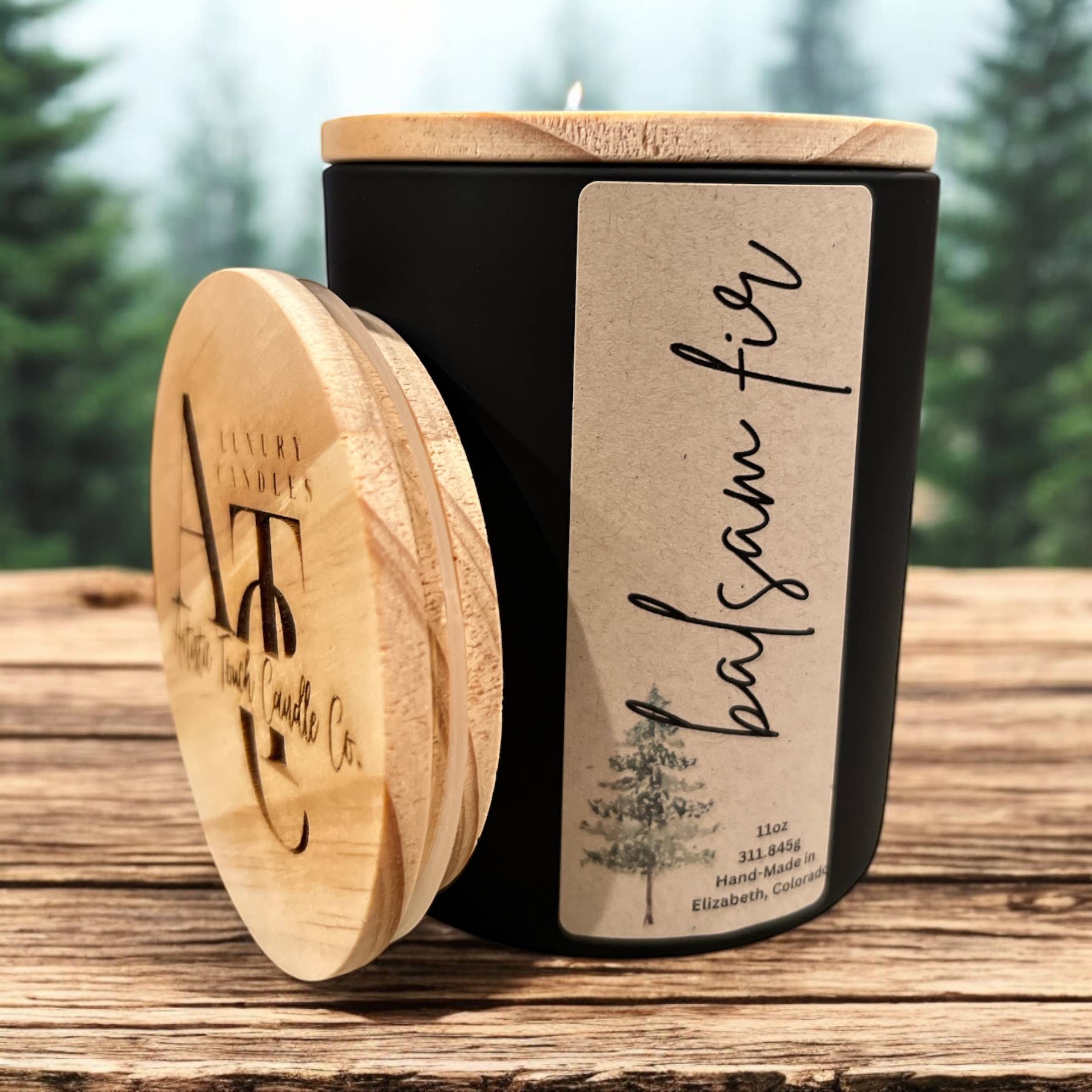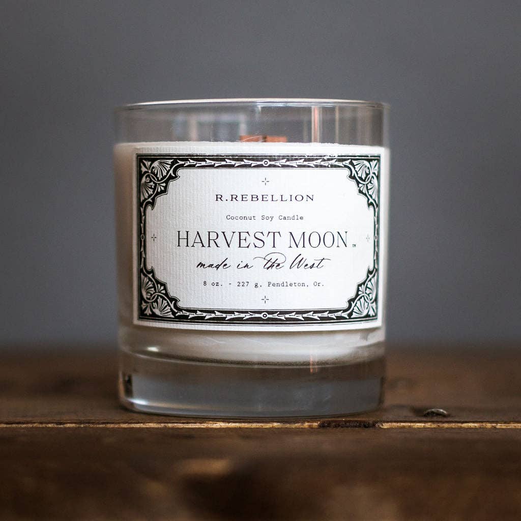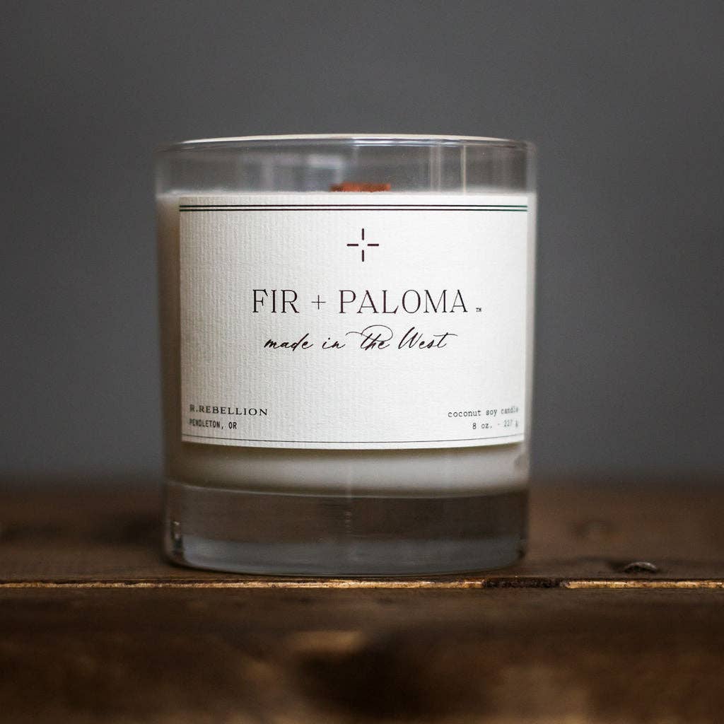 FOREST + FIG: apple, citrus, ginger, fig, caramel, cinnamon, coffee, twigs, and forest Weight: 8 oz / 227 gr Diameter: 3.125 in Height: 3.5 in Burn time: Up to 60 hours Vessel: Reusable Whiskey Glass Our candles are hand-poured in small batches with a luxurious blend of all-natural coconut + soy wax, wood wicks, phthalate-free fragrance oils, zero dyes, and always with love. Wood wicks are sustainably sourced, all-natural, and create a beautiful flame + soft crackle as they burn.