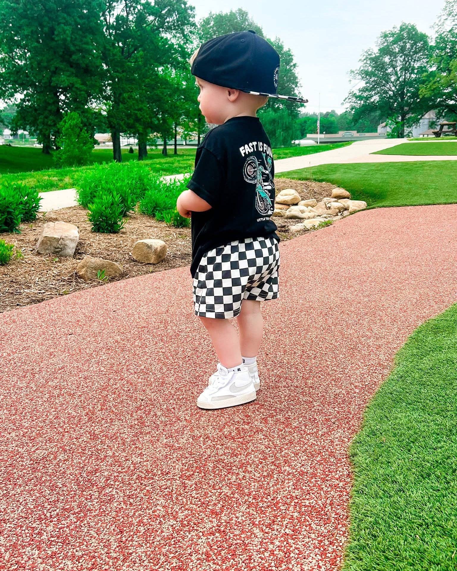 Our harem style checkered shorts are here to provide maximum comfort for your littles all day long + all summer long. Perfect to pair with a plain or graphic tee and some rad kicks. Made from a cotton spandex blend and features a functional draw string for longer wear. Cooling, stylish and stretchy - just what your little needs! Material: 95% Cotton 5% Spandex Washing Instructions: Wash with like colors, tumble dry on low or lay flat to dry. DO NOT BLEACH Made in China - LETTIE GRAYS -