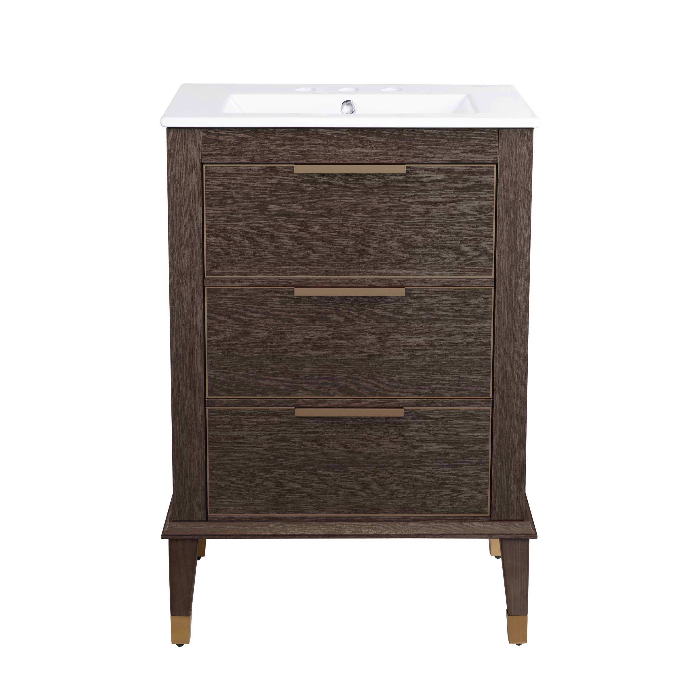 This nightstand combines durability and style with its sturdy P2-grade MDF construction, featuring anti-tip hardware and non-slip feet for added safety. Its compact size, 23.62" x 13.78" x 26.97", makes it perfect for tight spaces like the bedroom or living room. With 3 spacious drawers and a spacious top, it's ideal for organizing essentials or displaying decor. The sleek white finish and gold knobs add a touch of elegance, making it a stylish and practical addition to any room. Specification: Product Name: Nightstand with 3 Drawers Color: White/Beige/Green/Black/Blue Material: P2-grade MDF Dimensions: 23.62" x 13.78" x 26.97" Tabletop Weight Capacity: 100 lbs Drawers Weight Capacity: 30 lbs