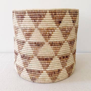 This beautiful and delicate basket is the quintessential Rwandan gift. The artisan weaves for about a week, using valley grasses and banana leaves over a papyrus frame, to create each Traditional Peace Basket. In Rwanda, Traditional Peace Baskets are often used to hold other gifts- like the one given by every bride to her new husband’s mother. These baskets are then proudly displayed in the home or used to contain dry goods such as beans or rice. The Traditional Journey Design Our artisan partner Pascasie Mukaburigo is an elder and founder of the Peace Baskets Cooperative. Pascasie told us that the basket’s traditional pattern, called umuraza, represents a path travelled together. Imagine two friends walking together to visit another dear friend. On their heads, they carry traditional baskets, filled with gifts from their harvest. They journey together down the path, through the hills of Rwanda, pausing to chat, and continuing on to the home of their friend. A gift to a mother is given discreetly, held in a beautiful basket. It is the mother who holds the secrets of the heart. – Rwandan Tradition Celebrate your love for people, resilience and beauty with our artisan-made home décor and gifts. Azizi Life is committed to loving, fair trade, ethical relationships. A portion of profit is donated to benefit our community impact projects. The Handcrafted Details - An artisan weaves for about a week to complete one basket. - Crafted from valley grasses and banana leaves, woven over a papyrus frame. - Masterfully sized, the lid snaps on by aligning it with the base from back to front. - Approximately 12.5 inches tall (including the lid). - Care: Dust with a smooth, dry cloth. Or feather duster. Everyone loves a good feather duster! - Note: Azizi Life goods are crafted from natural and locally-available raw materials. As such, each product is unique and may vary slightly in size or shade of color. Woven products exposed to sun or water may fade or become more malleable with time. - Ethically crafted by a person in rural Rwanda. - Includes a beautiful tag sharing the name of the artisan and their cooperative. Visit the Artisans section of our website to read about their cooperative and see a photo of the artisan behind your piece. Perfect for gift giving—this special touch makes your gift even more meaningful. - Azizi Life is a member of the Fair Trade Federation and committed to fair trade principles. - Every product supports our community impact projects. - Also available in Rwanda at the Ellen DeGeneres Campus of the Dian Fossey Gorilla Fund.