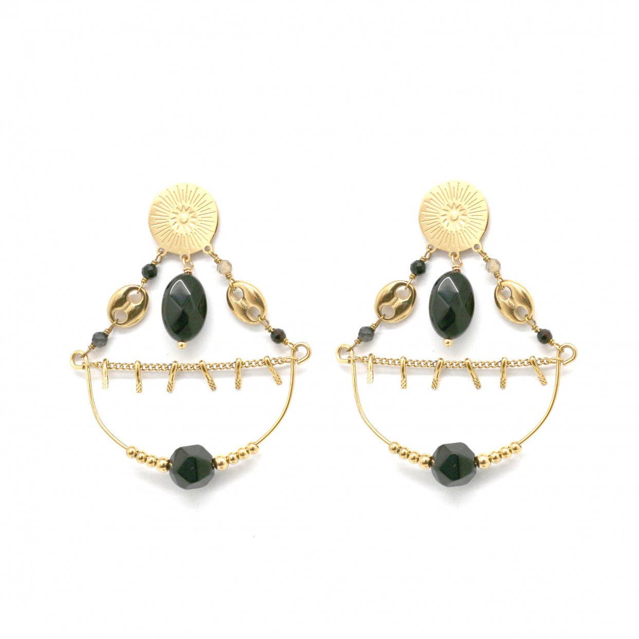 Elegant Links Earrings S&B - Onyx Stone