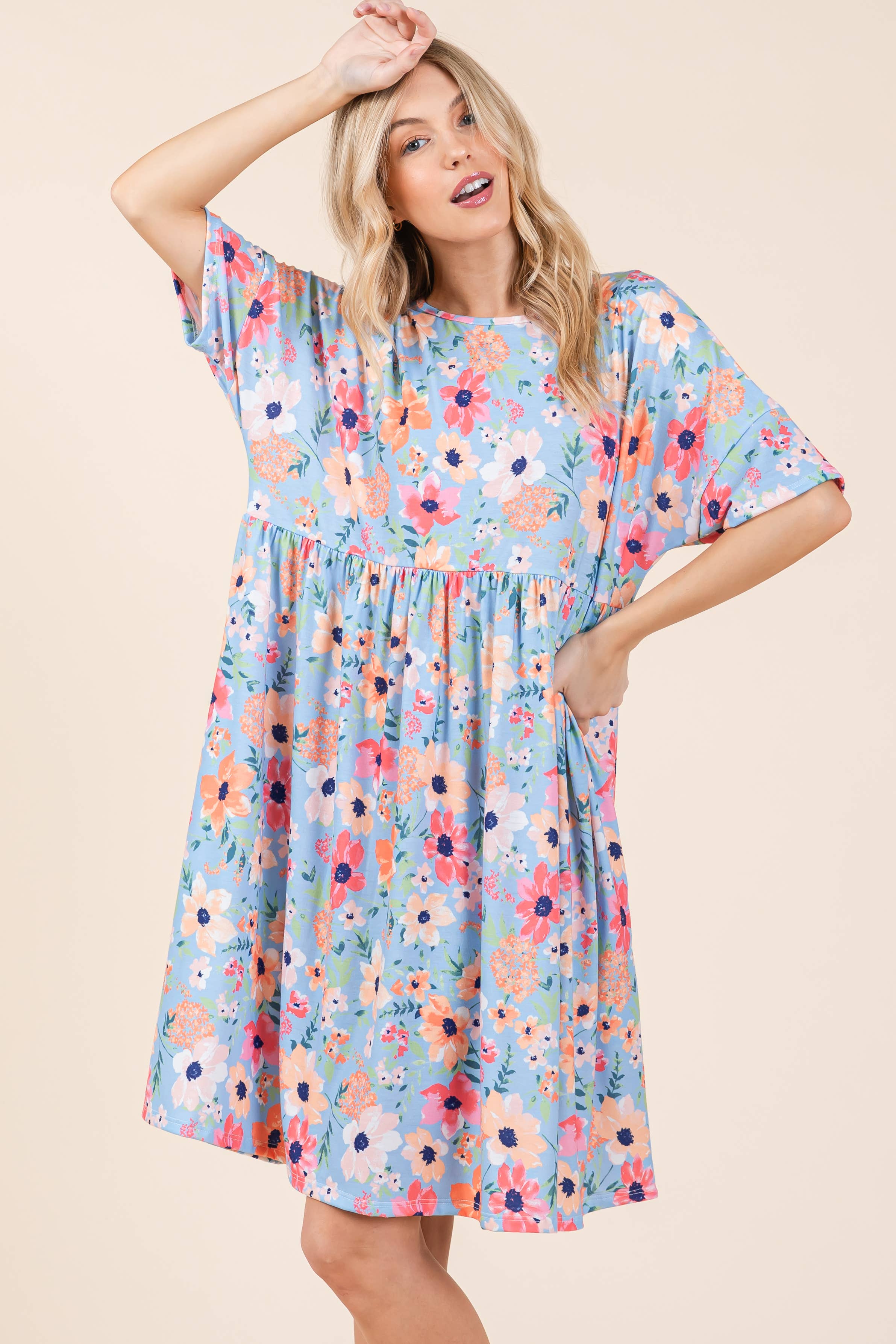 SKU: DA1597 Made in United States Aesthetic: Casual Care Instructions: Machine wash Dress Style: Baby Doll Fit: Contemporary and Missy Neckline: Round neck Occasion: Everyday Season: Resort Skirt & Dress Length: Midi Sleeve Length: Short Sleeve Product Language: English Fabric: 95% Polyester 5% Spandex Weight: 362.87 g (12.8 oz)