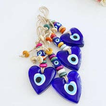 Discover the charm of our Evil Eye Wall Decoration With Wooden Beads, standing at a height of 11". This decorative tassel/wall drop is a unique piece by Benjamin International. This piece, like all our products, is a testament to our commitment to fair trade and innovative design. Add a touch of global flair to your home with this beautiful wall decoration.
