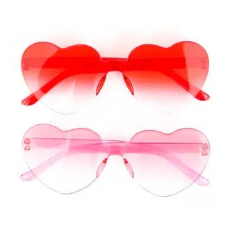 A two pack of cute heart sunglasses in a pink to yellow and turquoise to pink ombré. Adult sized.