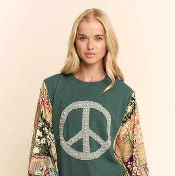 PEACE SIGN PATCH MINERAL WASH TOP