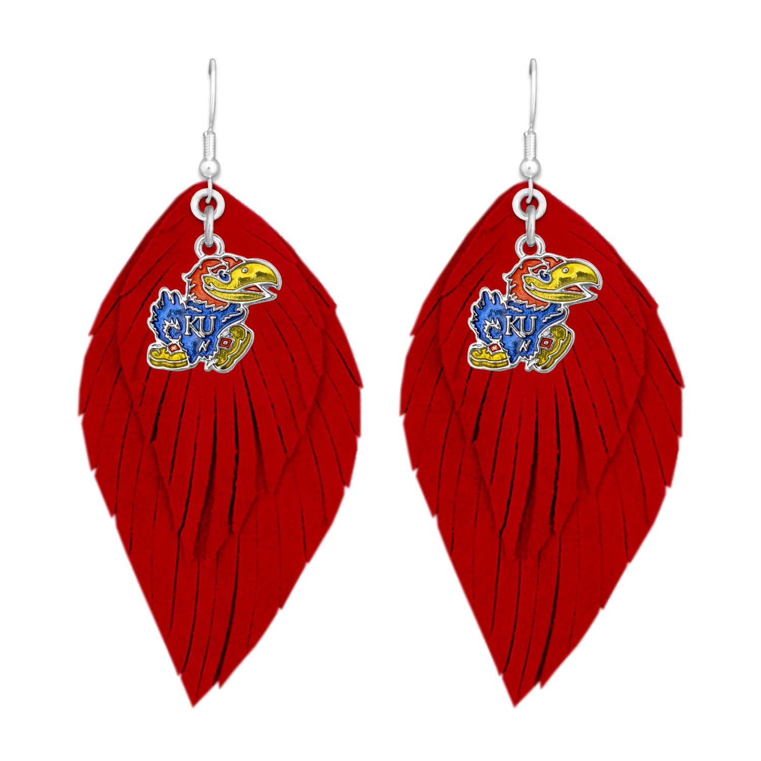 Red and Yellow layered teardrop with KC cut out on one side and our hero’s number 15 on the other side. Mediums are 3 in. long. Hooks are nickel free and silver.