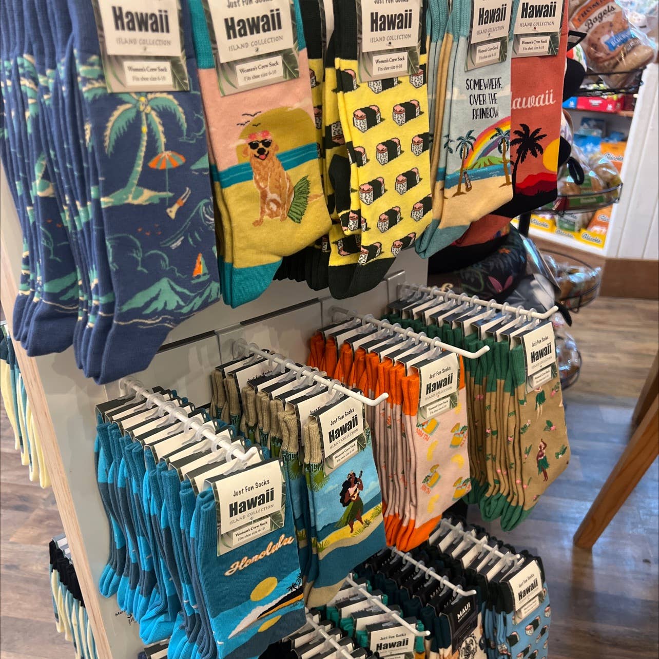 I really like how these socks look but a bit heavy material for Hawaii and some a bit scratchy feeling however, I believe they will sell well. Designs are great and I appreciate the hangers. I believe you should advise that these socks are all pre-priced, most fit into what I would have priced them so bid deal, just priced some before I realized they were already priced and had to remove my tags