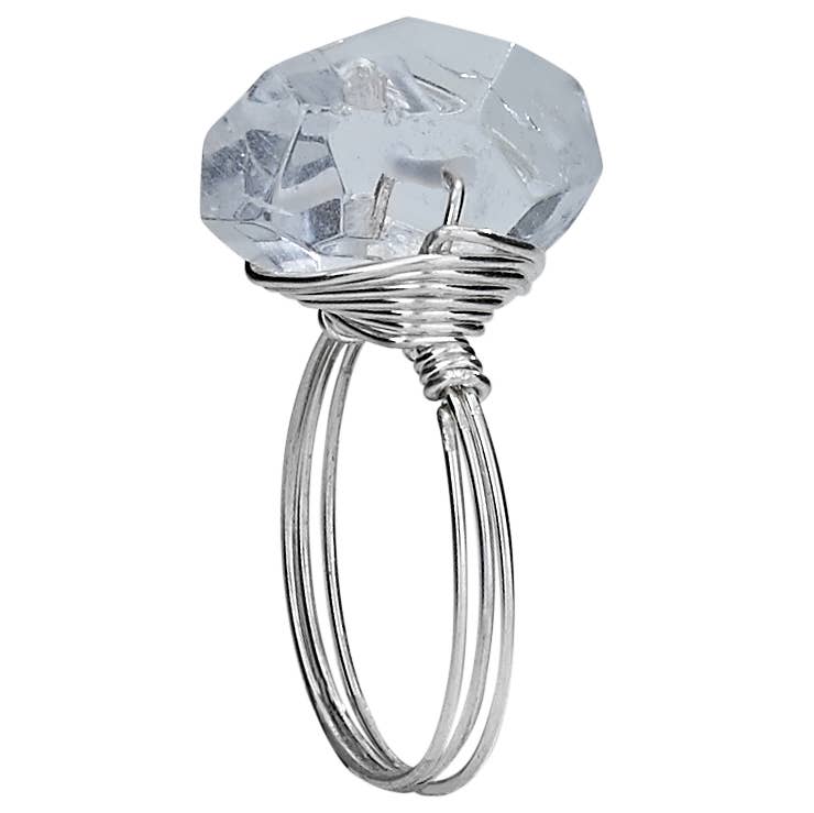 Square Crystal in champagne with tarnish resistant silver plated wire. Wire wrapped for design and stability. #1 SELLER! Sizes 5-10 Choose size at checkout. Also available in Blue Crystal or Smoke Crystal.
