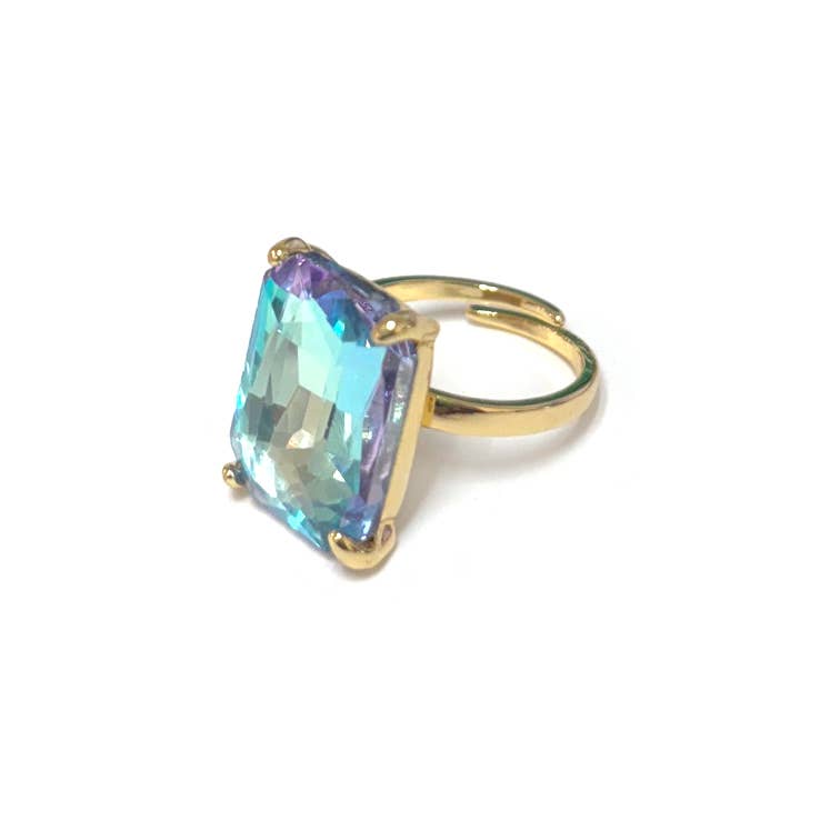 Champagne Square Crystal Silver Ring