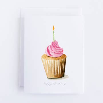 Good things come in small packages! A lovely watercolor cupcake adorns the exterior of this mini note card / enclosure card. Under it reads: "Happy Birthday!" The perfect way to spread joy and love. They also make a wonderful gift card holder too. - Printed in the US on heavy felt card stock. * 2.5" x 3.5" mini card with matching envelope * Weight is 100# Mohawk White Stock. Paper contains recycled content and certified wood. * It is archival, acid free, and elemental chlorine free * The paper is produced using certified green electricity * blank inside * Printed in Massachusetts * Original watercolor artwork by Danielle Driscoll
