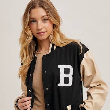 CC Wholesale Clothing - Wholesale Varsity/Baseball Jacket - Women's - Ezwear Letter Patched Crop Varsity Jacket1