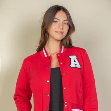 Introducing the EZwear Letter Patched Crop Varsity Jacket, a stylish and comfortable addition to your wardrobe. Made with very soft, stretchy fabric, this jacket combines sporty charm with a modern twist. Featuring long sleeves, a zipper closure, and an eye-catching A letter logo graphic, this jacket adds a bold, varsity-inspired touch to any outfit. Perfect for layering during the cooler months, this jacket is ideal for fall and winter wear. Key Features: Fabric: Soft, stretchy fabric that provides a comfortable and cozy fit. Fit: Cropped design with long sleeves and a zipper closure for an easy, flattering fit. Color Options: Black, Hot Pink, Red Sizes: Available in Small, Medium, and Large Design: Features a graphic A letter logo, adding a trendy varsity flair to the jacket.