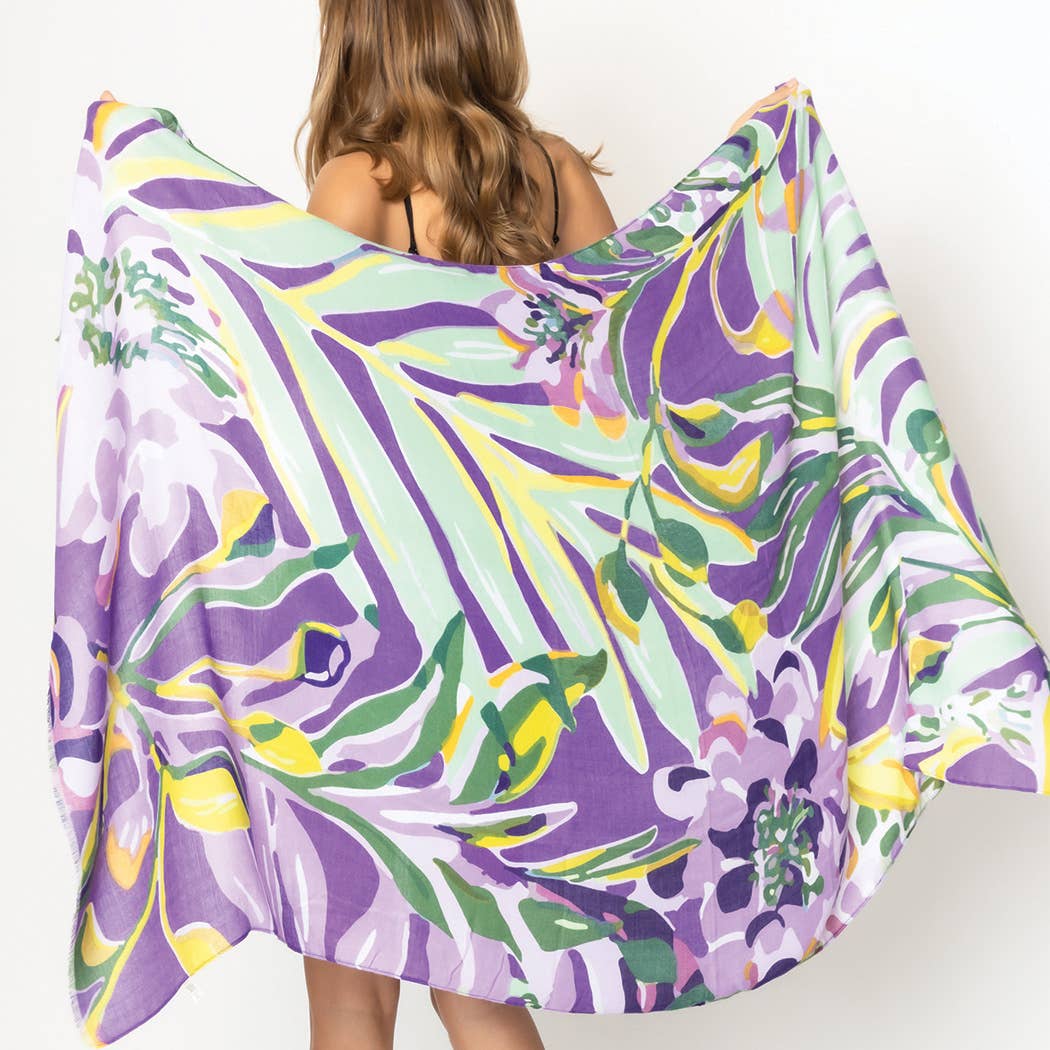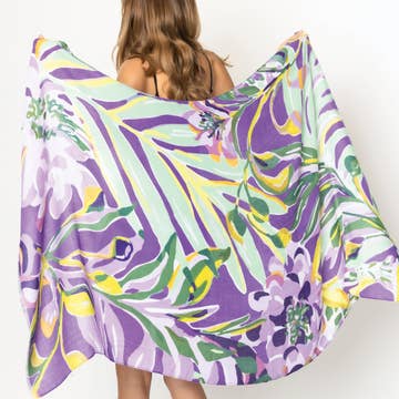 6' long boa of purple, green and gold feather mixture with matching purple, green and gold foil tinsel fringe mixed throughout.