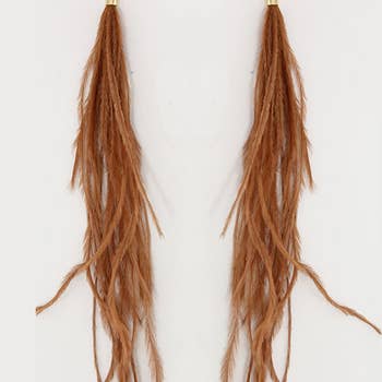 ♥ Hypoallergenic, lead-free, nickel-free ♥ 316L surgical steel earring hooks ♥ Sold in pair · Barrel capsizes Approx. 1/4" W x 7/16" L (7mm W x 10mm L) · Handmade item with real ostrich feather - naturally molted and collected. · Tassel length is around 5 to 6 inches long - can be trimmed with scissors. · Gold-plated 316L surgical stainless steel ear hooks - considered hypoallergic to most people. · Lightweight. ♥ All the feathers we got are real feathers from the apparel industry. They are naturally molted and collected. (So no birds are harmed exclusively for their feathers.) Perfect for adding a touch of elegance and bohemian flair to any outfit, these earrings are sure to make a statement wherever you go. ☀ Quality guaranteed. All merchandise is personally tested by us, a US seller. ☀ Each digital screen displays color differently. The actual item may appear to be slightly different.