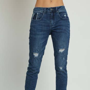 SKU: F4159 Made in China Aesthetic: Casual and Retro / vintage Care Instructions: Hand wash Denim Wash: Medium Wash Fabric: 93% COTTON, 5% POLYESTER, 2% SPANDEX Fit: Contemporary and Junior Occasion Theme: Everyday Occasion: Everyday Pant Length: Ankle Pant Style: Cropped and Skinny Rise Style: Regular Weight: 453.59 g (1 lb)