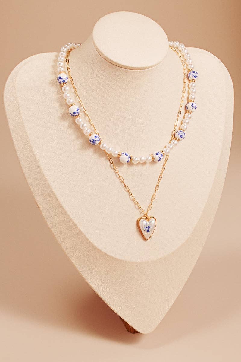Ceramic Blue Bead Bow Pendant Necklace