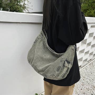 Crossbody Canvas Big Shoulder Bag_CWAB0420 SIZE:OS(1) 100% ACRYLIC MADE IN CHINA Canvas bag, casual bag, crossbody bag, simple bag, large bag, women's bag