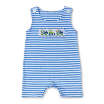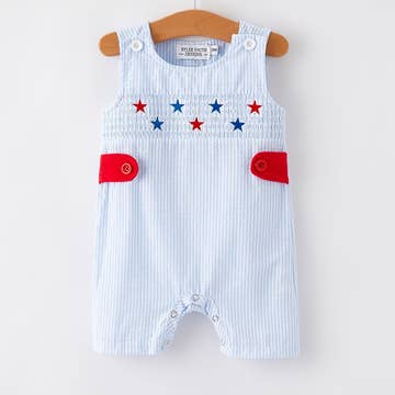 No reviews for Blue Seersucker Baseball Smocked Shortalls yet.