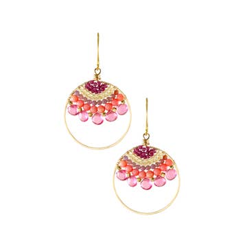 SKU: EE21E Made in United States Color: Green, Multi-Colored, Orange, Pink, Red, and White Is Set: Individual Material: Acrylic, Brass, Gold Filled, and Resin Occasion: Everyday and Mother's Day Style: Bohemian Theme: Summer Product Language: English Dimensions: 7.1 x 4.6 cm (2.8 x 1.8 in) Product Materials: Recycled and Upcycled