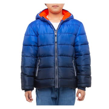 The Rokka&Rolla Girls' Reversible Jacket Fleece Lined Puffer Coat offers two stylish looks in one cozy design. Featuring a front full-length reversed zipper and chin guard, it ensures comfort and easy wear. One side shows off a bold ombre gradient design, while the reversible fleece side adds soft warmth for chilly days. This hooded jacket includes two side zippered pockets, elastic cuffs and hem to help block out the wind, and reliable wind protection to keep her comfortable outdoors. A name tag inside adds convenience for school. Perfect for versatile wear and all-day comfort. Features • Reversible with fleece lining • Ombre design and full zip front • Hooded with wind protection • Zippered pockets and name tag • Refer to size chart in gallery for US sizing, model in Ombre Lilac Blue in WHITE BACKGROUND is 55'' and 62 lbs wearing Size M