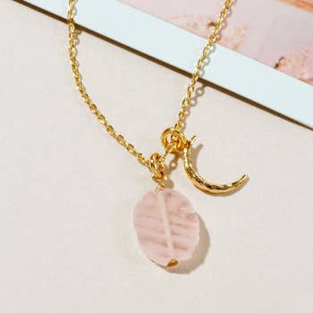 Wholesale Rose Quartz Crescent Moon Necklace