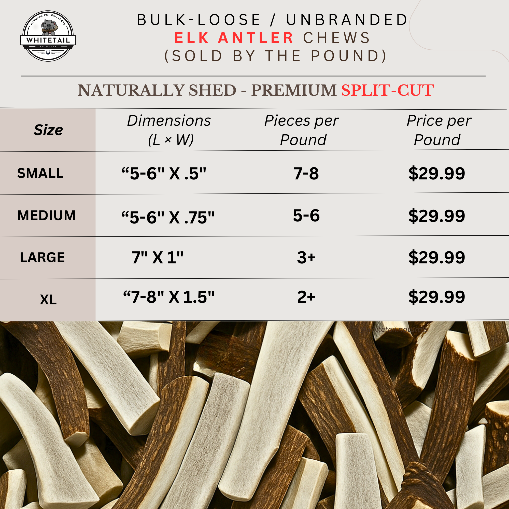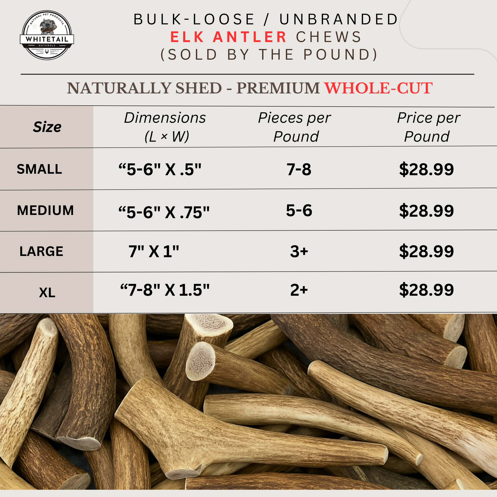 My husband was skeptical about us needing to order the MONSTER SIZE XXL antlers but they have been highly sought after by customers and are doing well on the shelves. The antlers are beautifully high quality and customers are loving them! We will be repeat, REPEAT customers for sure. Give them a try - you will not be disappointed!
