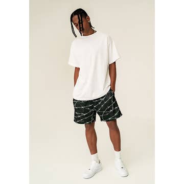 RELAXED AND SLIGHTLY CROPPED FIT MESH SHORT IN NAVY. ELASTIC WAIST WITH CONCEALED DRAWSTRING CLOSURE. TWO SIDE SEAM POCKETS. MADE IN LOS ANGELES. EACH PIECE IS ONE OF A KIND. 100% POLYESTER MESH.