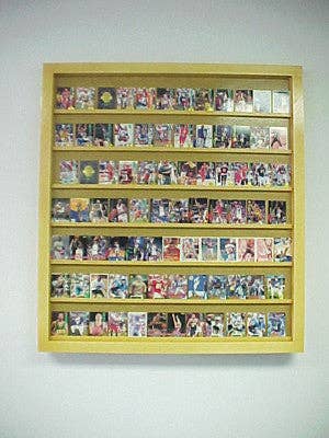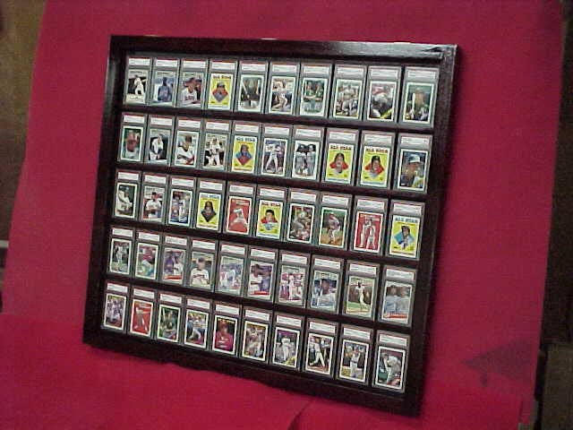 30 Graded Baseball Card display Case DEEP PSA BeckettThis solid hardwood case is hand made in the USA at a Michigan location not Imported , Black FINISH pictured , Mahogany Finish, Walnut finish, or Oak Finish (please request Color choice )It has 2 brass Locks 2 Wall mounts on the back Full UV protection2 Brass Hinges 24" x 36" x 2.25" Outside Dimension22" x 34" x 1.5" Inside Dimension Between Shelves 6" Ready to hang FREE SHIPPING TO THE CONT. USA Holds almost all Graded cards as long as they are less than 6" tall Shelf slot to hold them on the shelf.Black FINISH pictured , Mahogany Finish, Walnut finish, oak Finish ( please request) with a glossy protective coat (baseball cards not included).