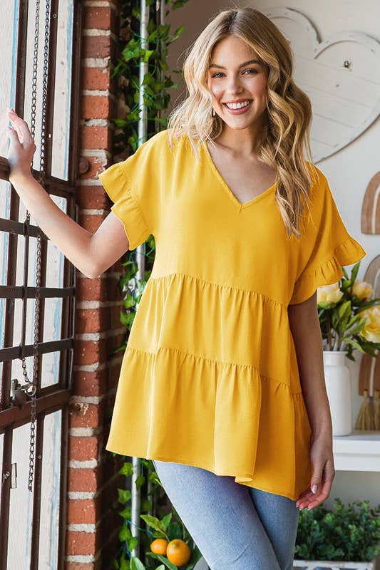 TUNIC TOP WITH LACE SLEEVE TRIMMINGS-4480MUSTARD
