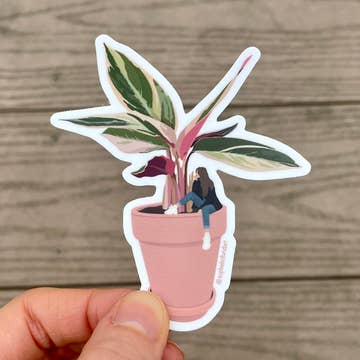 Sophie Holland Art - Wholesale Sticker - Stromanthe Triostar Plant Girl Sticker
