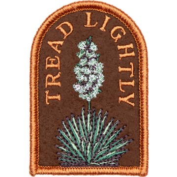 A reinterpretation of the historical Gadsen flag, our DONT TREAD ON ME design instead features poppies, the California State flowers, in place of the coiled rattlesnake ready to strike. Native plants are a precious part of our eco system! While the beauty of these blooms are appreciated by many, their delicate environments are often abused when folks don’t stay on the trail. This illustration is our reminder to all that we must be careful where we step and to encourage conservation of our beloved flora! MATERIALS Embroidered sew on patch. Measures 3.5” x 2.75".