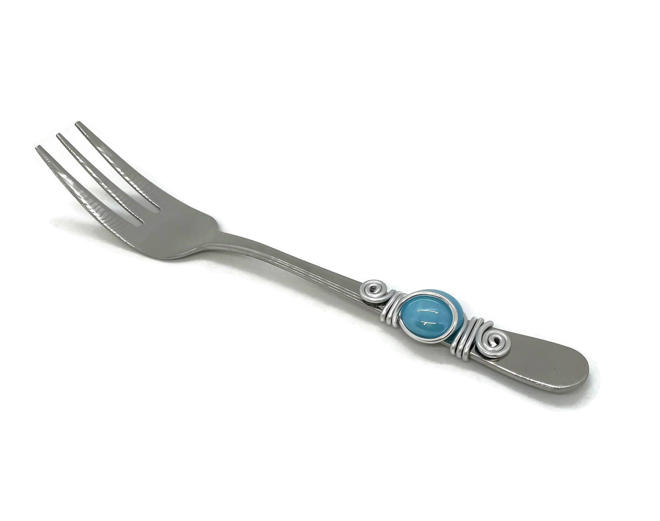 Durable condiment spreaders with rounded blades quickly butter toast, evenly spread honey, jam or jelly on bread. Wide blade distributes cream cheese evenly on bagels, easily spreads egg salad, tuna salad or peanut butter. The cute spreader has a serrated edge on one side of the blade for easy cutting butter and more! Perfect for your charcuterie boards! Each knife is made of high quality stainless steel and has one cabochon marble and wired with anodized aluminum wire. 3 3/4" blade (8"L w/handle) x 1 1/4"W ******Due to the nature of the marble, there may be a slight variance and/or banding in color from picture above***** ***Hand wash only***