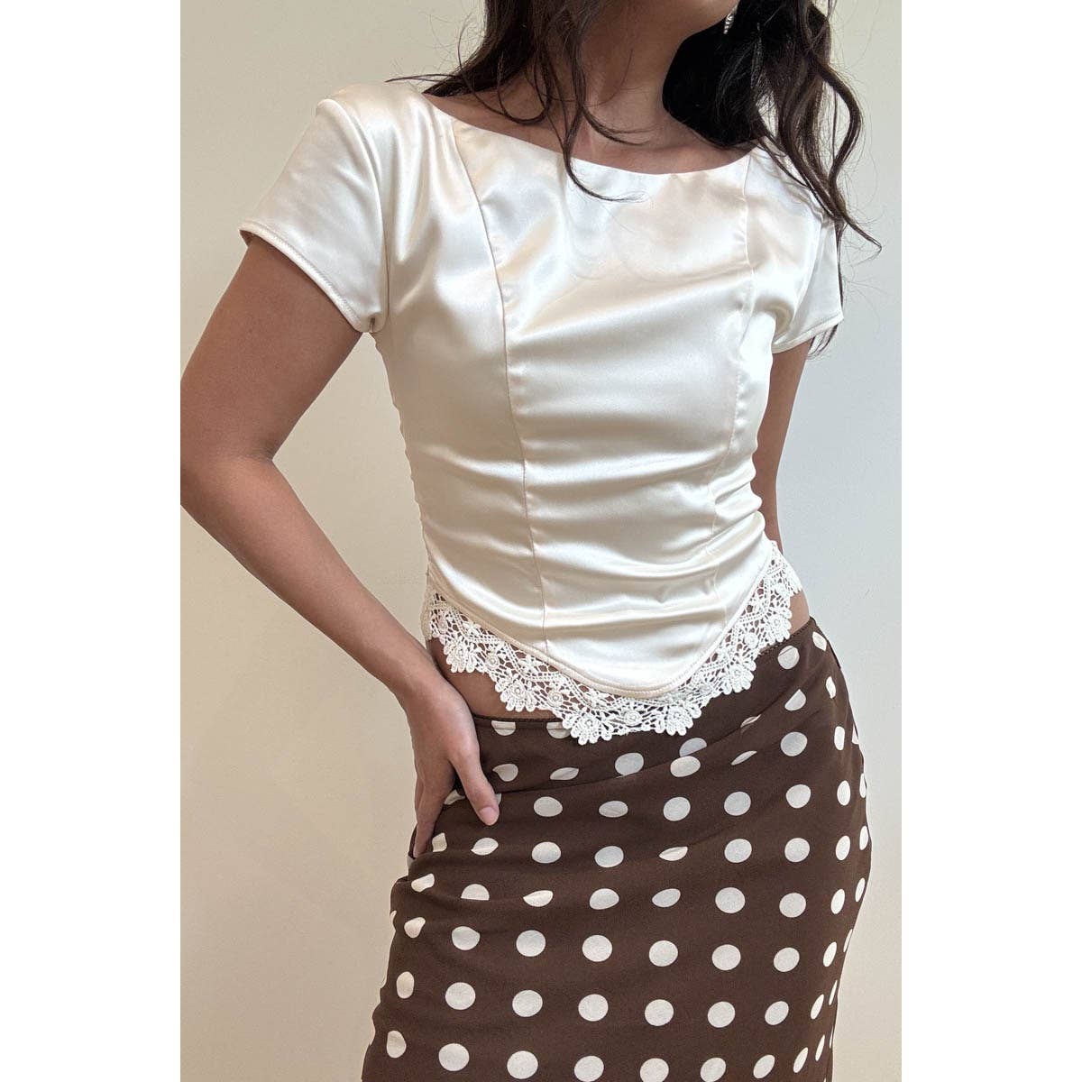 * Material: Crafted from 92% Polyester and 8% Spandex. * Features: This chic top features a sophisticated high neck design and a flattering bubble hem, ensuring a stylish silhouette that complements any figure. The wrap-style open back adds a touch of allure, while the back neck button closure provides a secure fit. * Washing Instructions: Hand wash recommended, machine wash available. Do not bleach and iron. * Model is 5'3" and Wearing a Size Small. womens clothing, blouse, clothing women, boutique clothing, clothing 92% Polyester, 8% Spandex