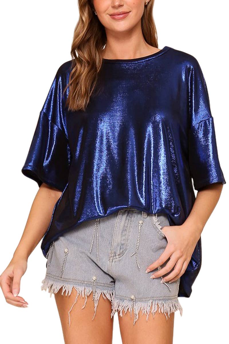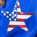 - Crew neckline - Star sequin detail - Casual drop shoulder - Short-sleeves - 100% cotton knit T-shirt top. - High-quality, lightweight, and breathable - Comfortable, Relaxed fit - 4th of July, July Fourth, Holiday, Graphic - Core * Model is 5'8, 32-27-37, wearing SMALL