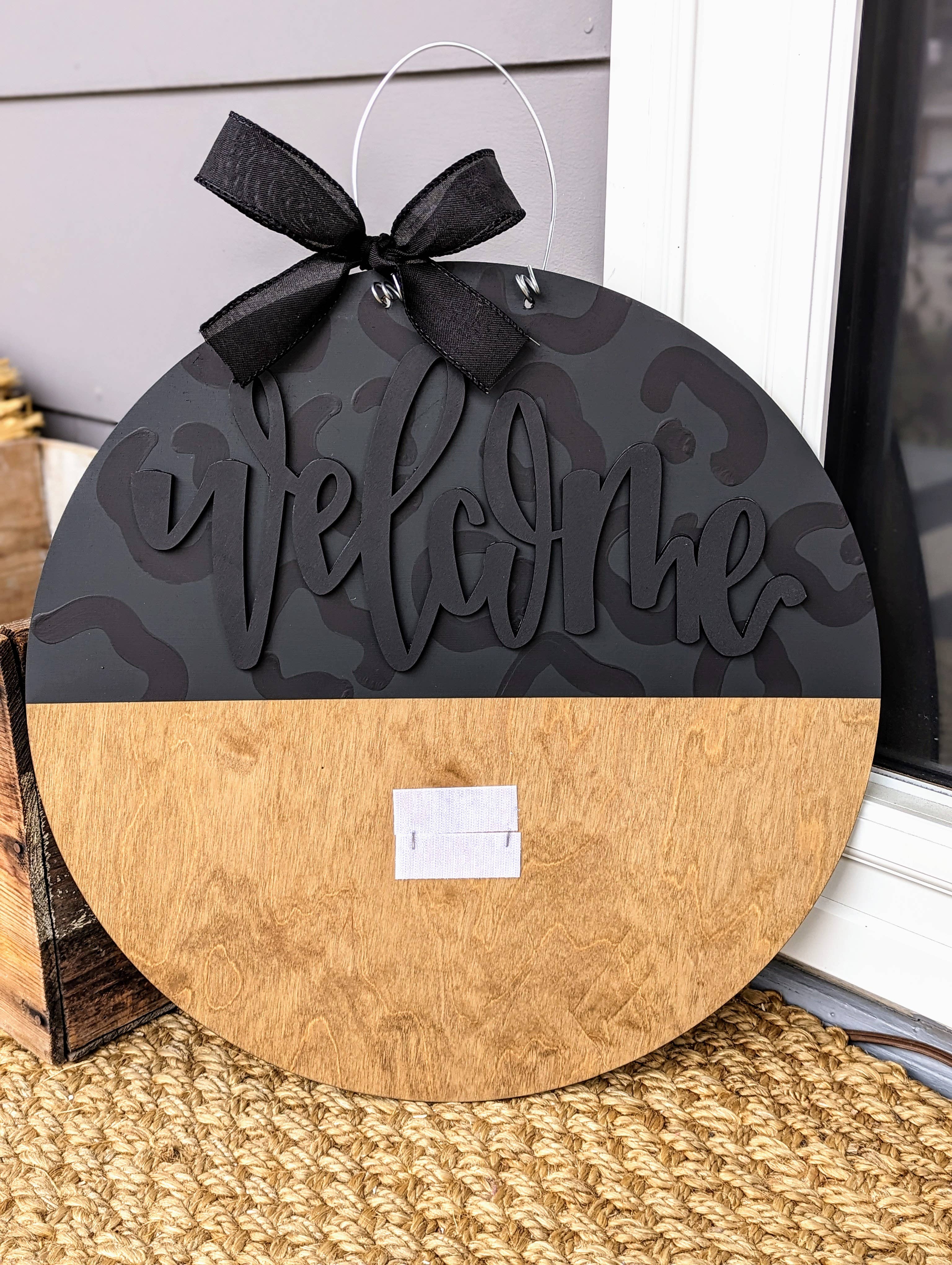 Door hangers are such a fun way of decorating your door! Sturdy, lightweight, and oh-so pretty! This sign is cut out of 1/4 inch Birch, stained and painted with acrylic paint. It is sprayed with a clear protective coating that prevents chipping, peeling, fading, or yellowing. It hangs from sturdy wire and is accessorized with a bow to match. Every door hanger is hand painted by myself so there may be very slight variations between your actual design and what you see here. SIZE: Approx. 18" *Due to supply shortage, the ribbon and greenery may be changed without notice. It will always be flattering and compliment the hanger's colors, so I ask that you trust my judgement. If you have any questions or want to confirm before purchasing, please send me a message!