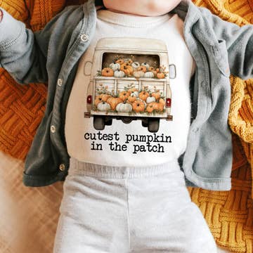 Default Fall graphic organic onesie| hey there pumpkin (long sleeve) for wholesale on Faire