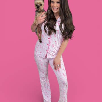* Artwork Credit to Taylor Posey // @taylor_designs * Buttery- Soft Bamboo Pajama Sets now available * Pink with stunning iced coffee icons - perfect for your lounging and morning coffee! * Short sleeve sleep Top: Notched Collar, Front Button Closure, Short Sleeves Sleep Pants: Elastic Waistband with Drawstring Tie, Hip Pockets, + Relaxed Fit * Model is wearing a size Medium * Designed with love by our team in Arkansas, made in China! * Care Instructions: Gentle Wash Cold, Inside Out, Tumble Dry Low * Materials: 95% Bamboo Viscose, 5% Spandex * Sizing Guide is attached.
